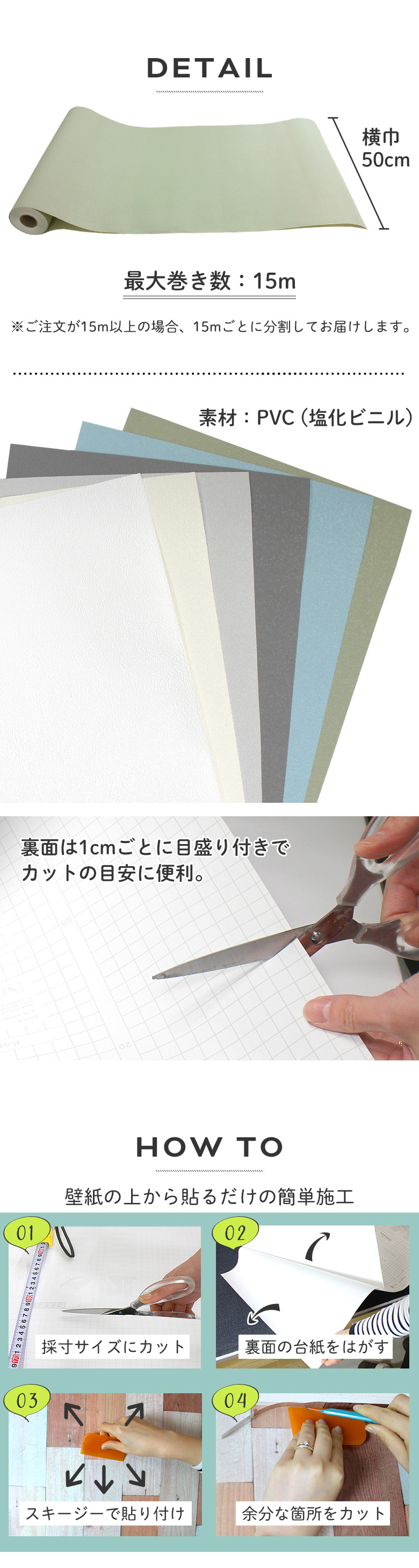 壁紙 シール 1m切り売り 無地 PS01●MSP-01