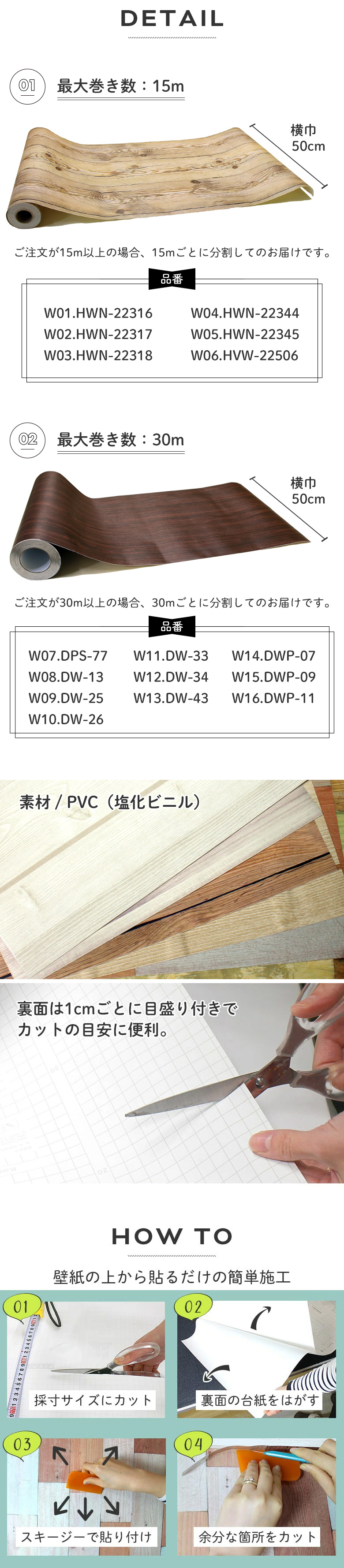 壁紙 シール 1m切り売り 木目柄 K01●HWN-22366 リメイクシート