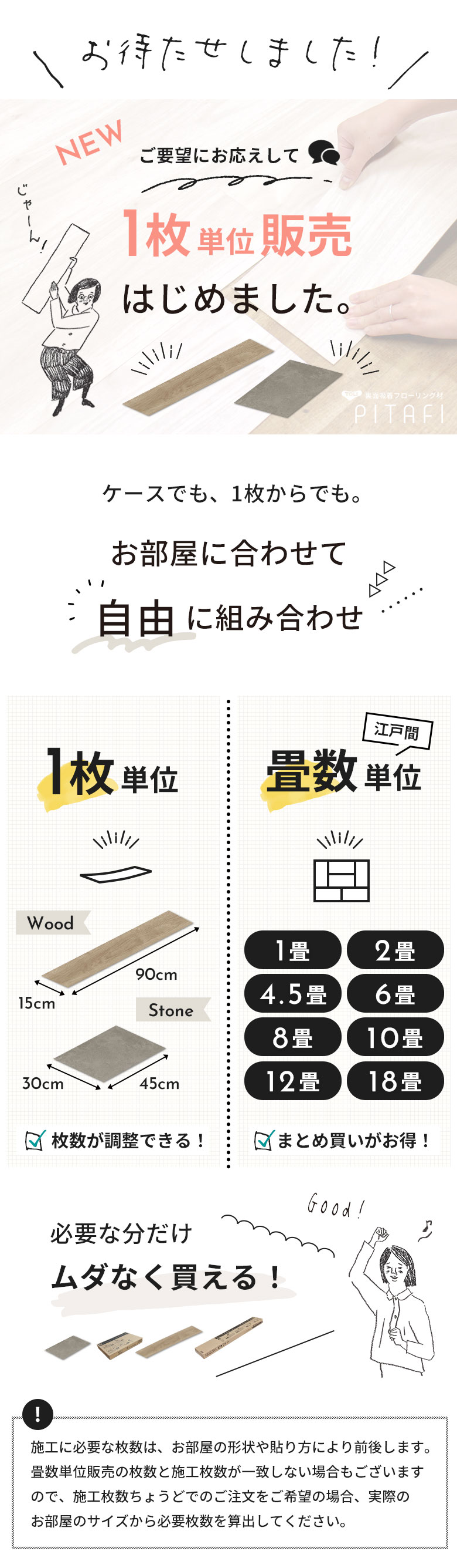 裏面吸着フローリング材 ピタフィー に...『1枚』or『畳数 』単位販売が登場!▼ ▼ ▼