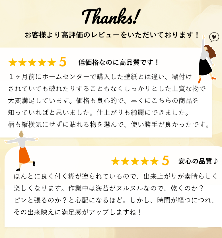 注)汚れ防止など表面にフィルム加工された壁紙や汚れが激しい壁紙の上には接着しない場合もございます。