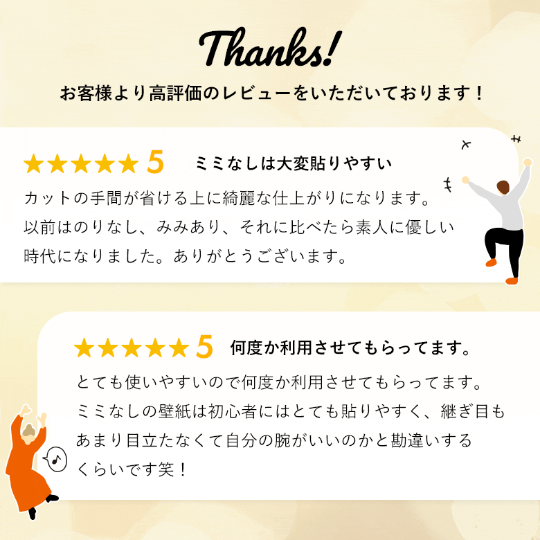 - スリット壁紙(ミミなし)なので、重ね切り不要でぴったりと突き合わせるだけ。初心者でも簡単、スピーディーに貼り替えができます。