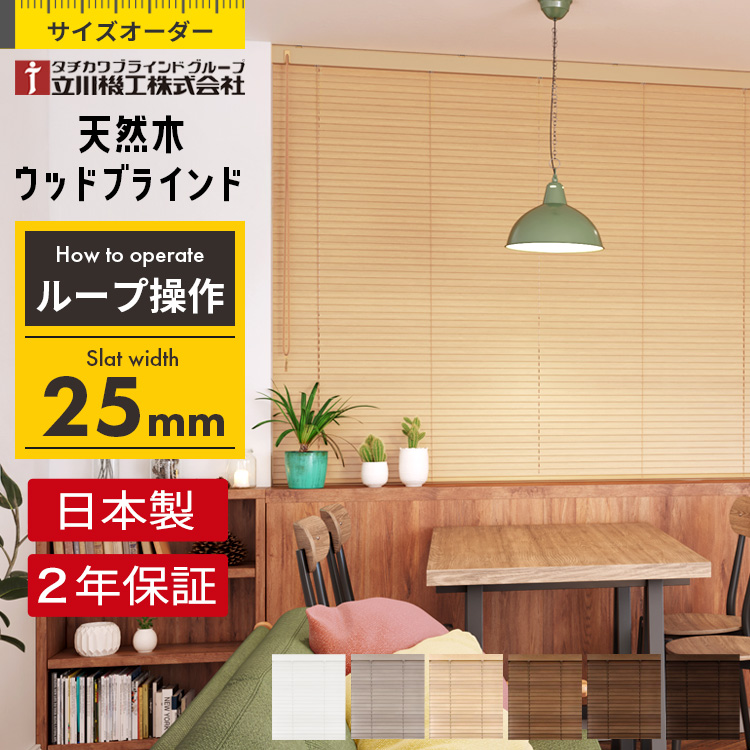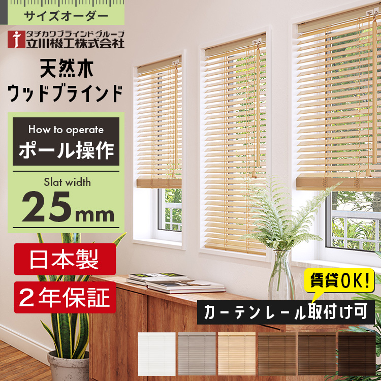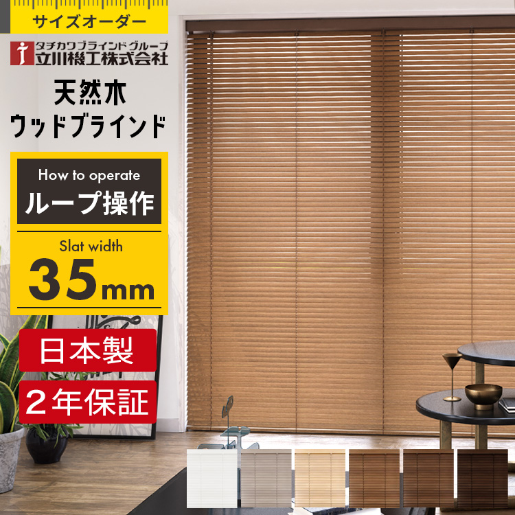 - ブラインド 木製 ウッドブラインド オーダー ポール操作 スラット幅 35mm カーテンレール取付可 日本製 タチカワブラインドグループ 立川機工