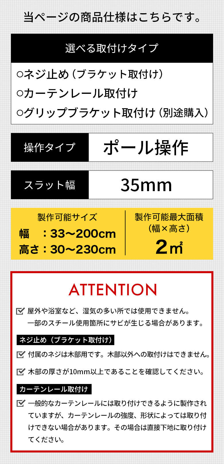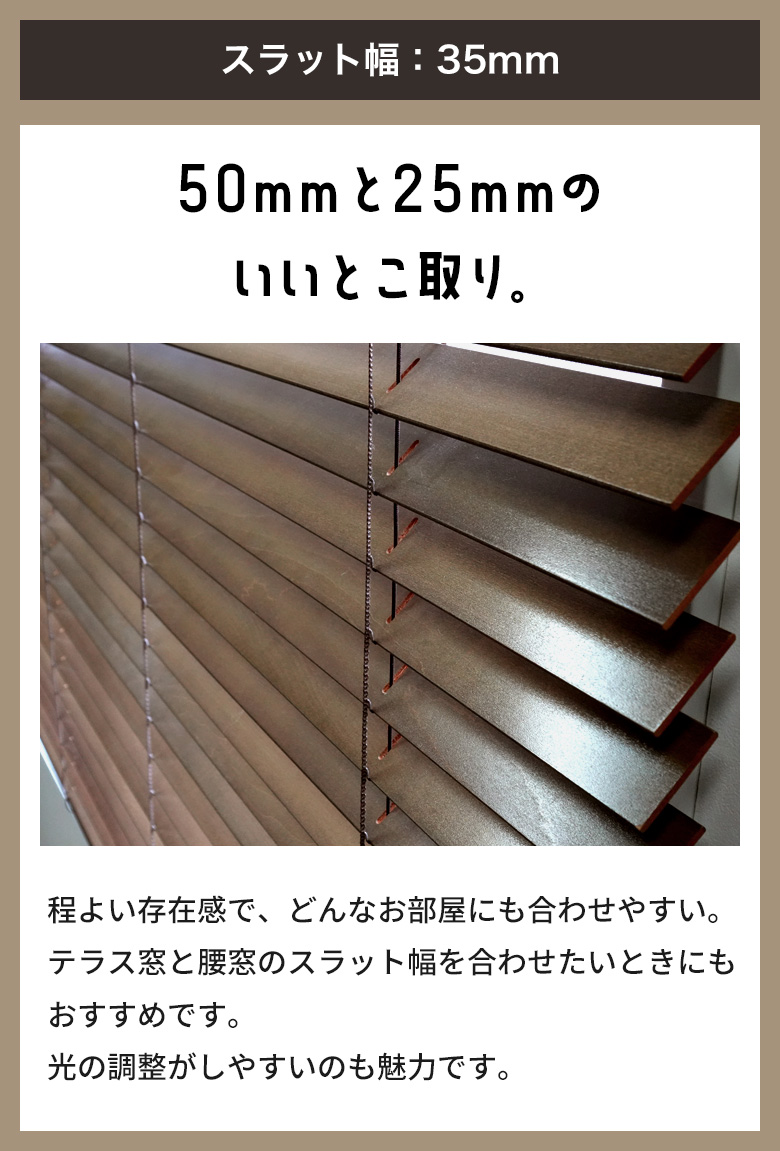 ウッドブラインド オーダー ポール操作 スラット幅 35mm 木製