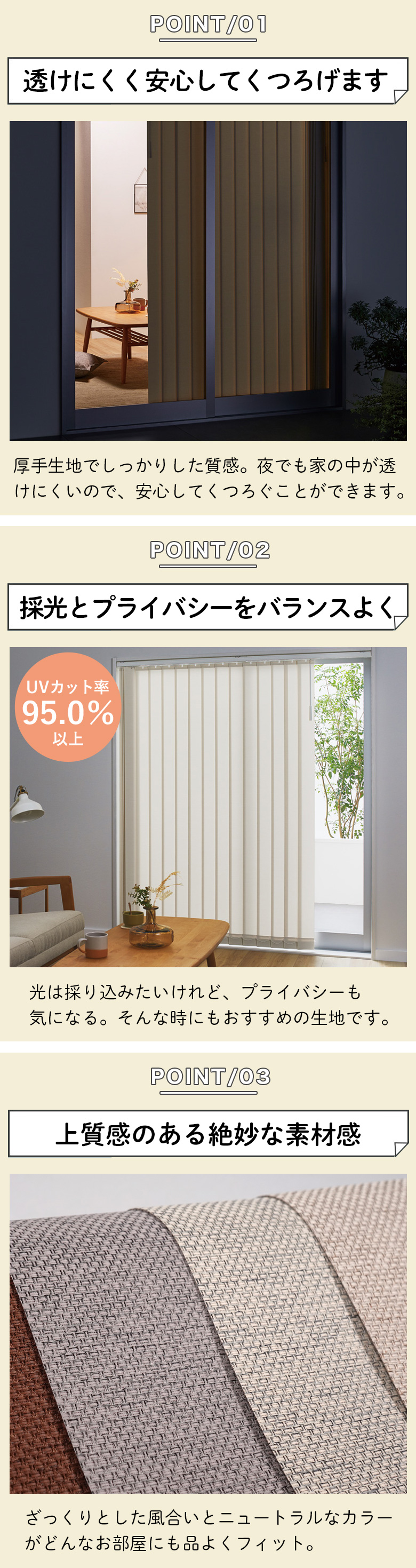 ■生地:非遮光タイプ(洗濯OK ウォッシャブル)