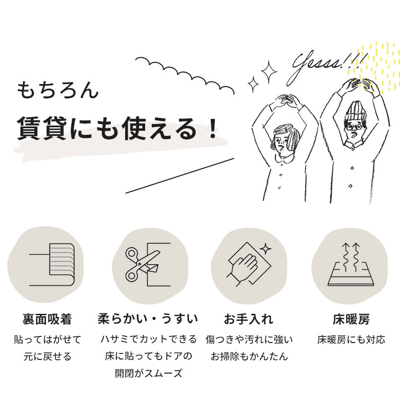 ・塩ビ製床材には珍しく床暖房にも対応。敷く場所を選びません。