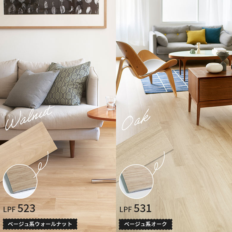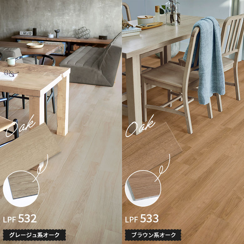 - LPF521 ( ホワイト系ウォールナット ) , LPF522 ( ブラウン系ウォールナット ) , LPF523 ( ベージュ系ウォールナット ) , LPF531 ( ベージュ系オーク ) , LPF532 ( グレージュ系オーク ) , LPF533 ( ブラウン系オーク ) , LPF541 ( ヴィンテージウッド ) , LPF551 ( ホワイトペイントウッド ) , LPF701 ( ホワイト系モイストタイル ) , LPF702 ( ベージュ系モイストタイル ) , LPF703 ( グレー系モイストタイル ) , LPF711 ( ハードモルタル )