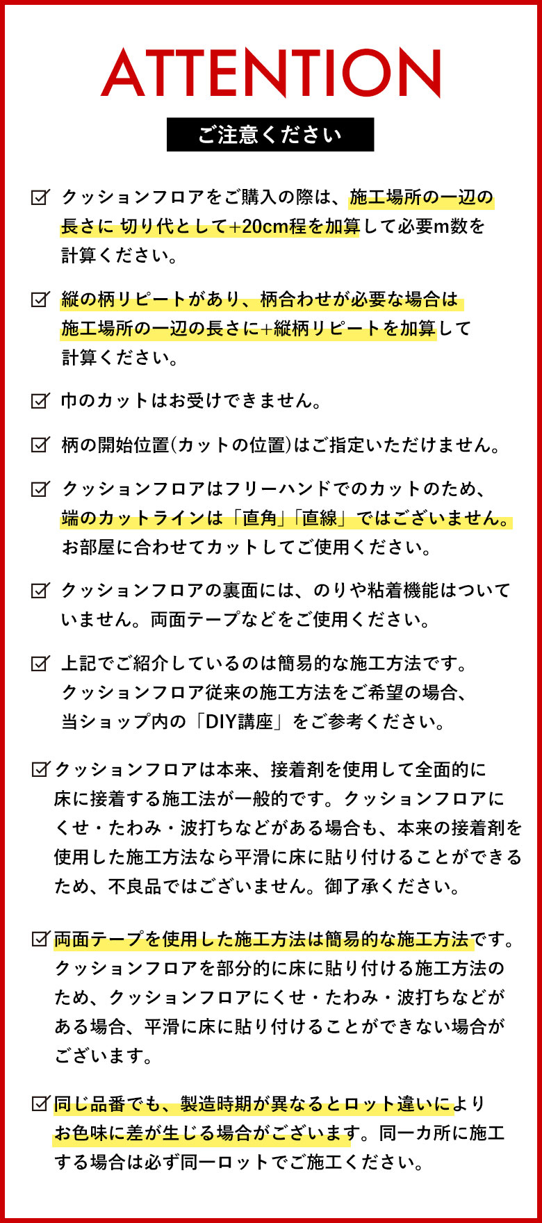 >>「ご利用ガイド>送料について>クッションフロアの送料」をご確認ください。