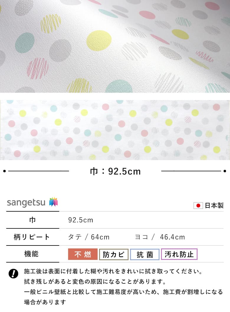 - 【壁紙 のりなし】 両面テープで賃貸OK ドット 水玉 TH-34976