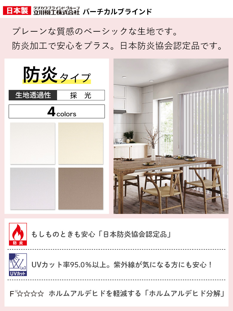 - 縦型 バーチカルブラインド オーダー カーテンレール取付け可 防炎タイプ タチカワブラインド 立川機工 日本製「幅30-400cm×高さ40-400cm」