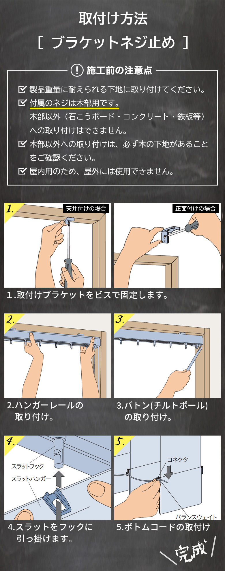 ※付属のネジは木部用のため木部以外では使用できません。