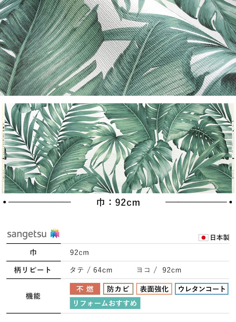 ウレタンコート機能付きのパームリーフ柄