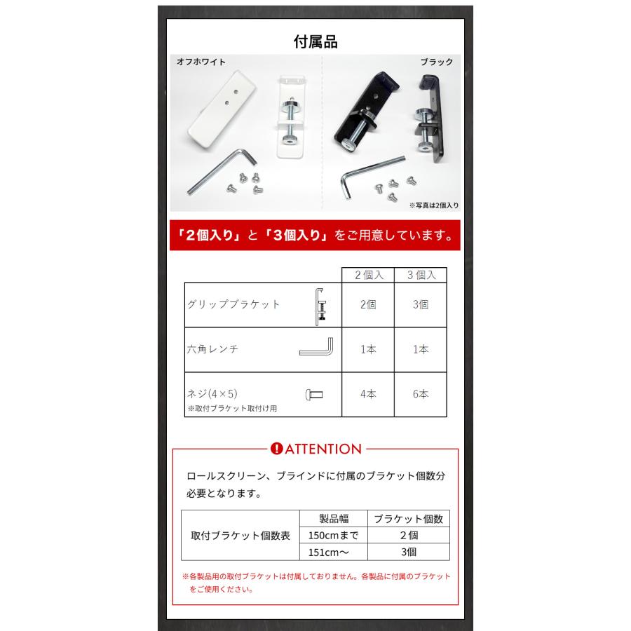 - 窓枠取付けブラケット 賃貸OK ネジ不要 ロールスクリーン ブラインド 取り付け 金具 鴨居 窓枠 ドア枠 立川機工製品専用 グリップブラケット