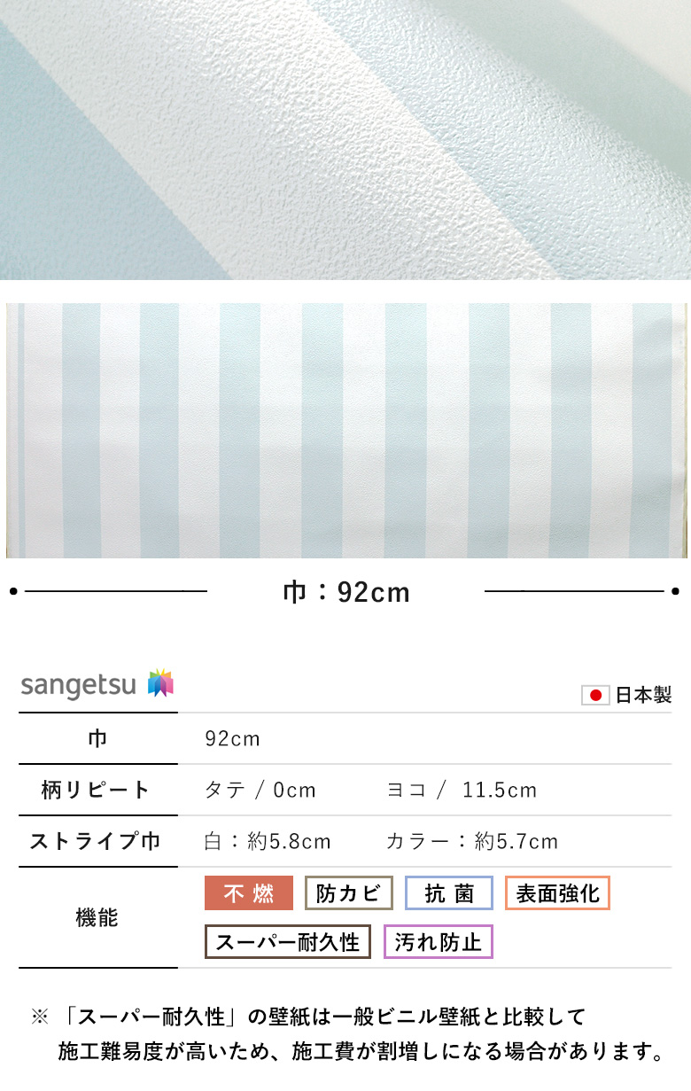 - 【壁紙 のり付き】 壁紙の上から貼れる壁紙 ストライプ FE-76843