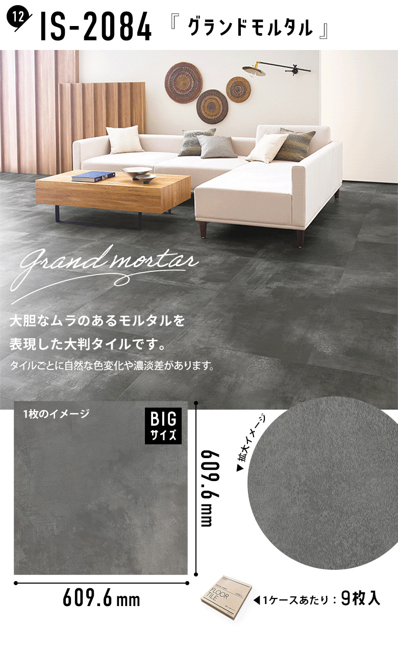 - フロアタイル モルタル&コンクリート 約2畳分 1ケース IS-2084