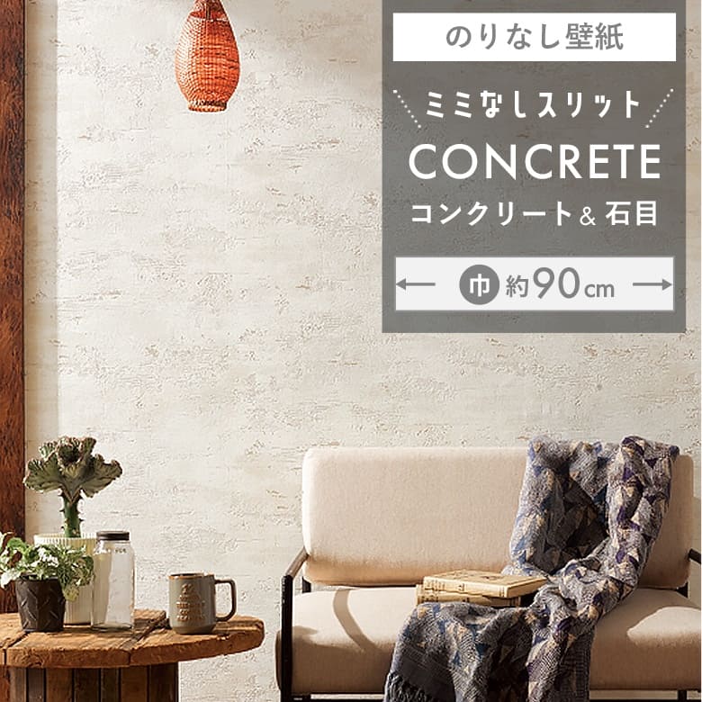 - 【壁紙 のりなし】 「スリット壁紙 ミミなし」 明るめコンクリート 石目柄 BB-2413