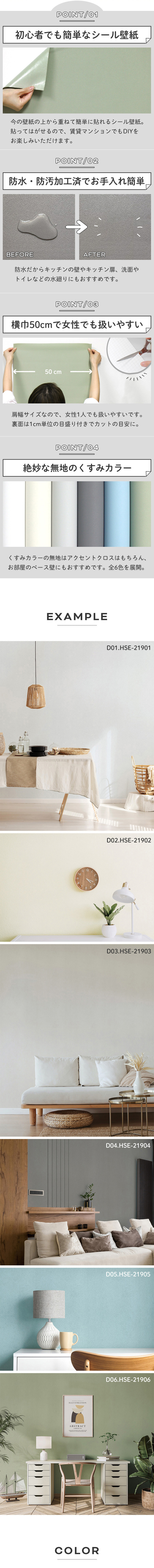 壁紙 シール 1m切売 くすみカラー P01●HSE-21905 リメイクシート