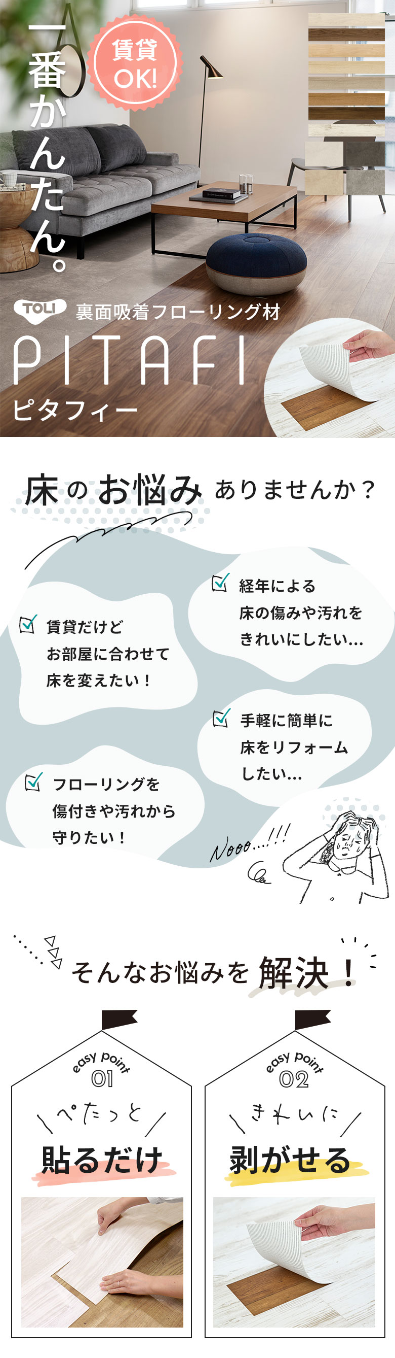 賃貸OK 貼ってはがせる 吸着フローリング材 東リ PITAFI ピタフィー