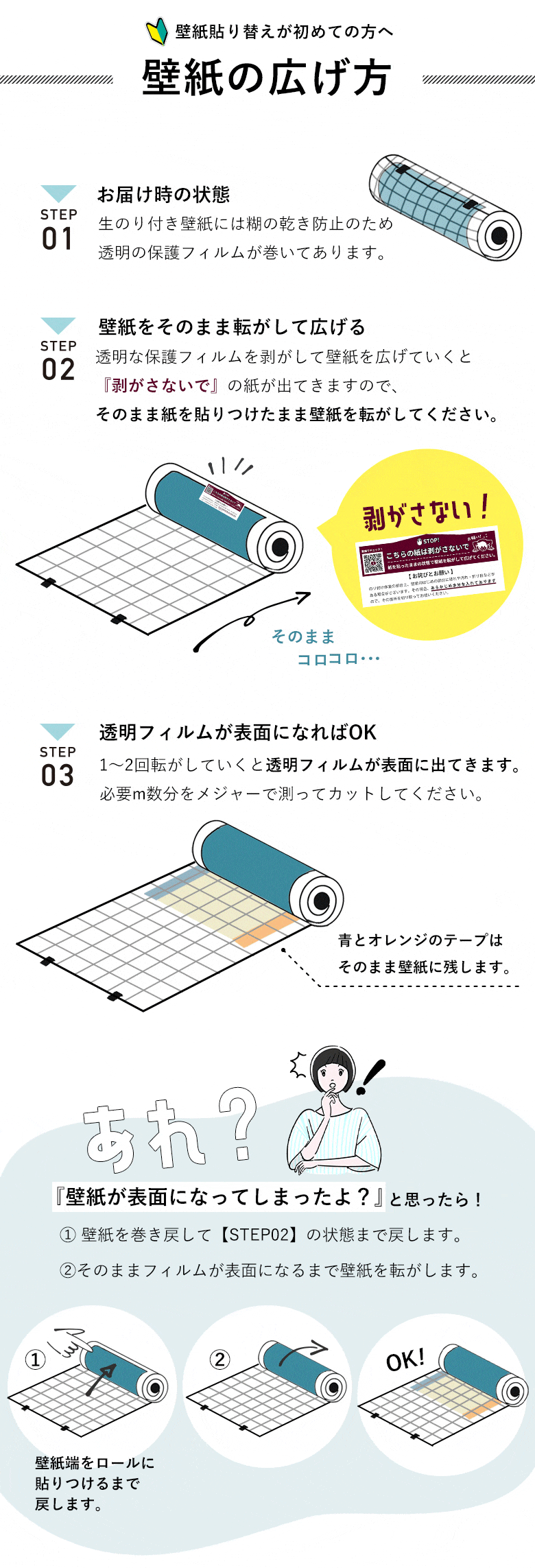 注)汚れ防止壁紙など表面にフィルム加工されている壁紙や、汚れが激しい壁紙の上には接着しない場合もございます。