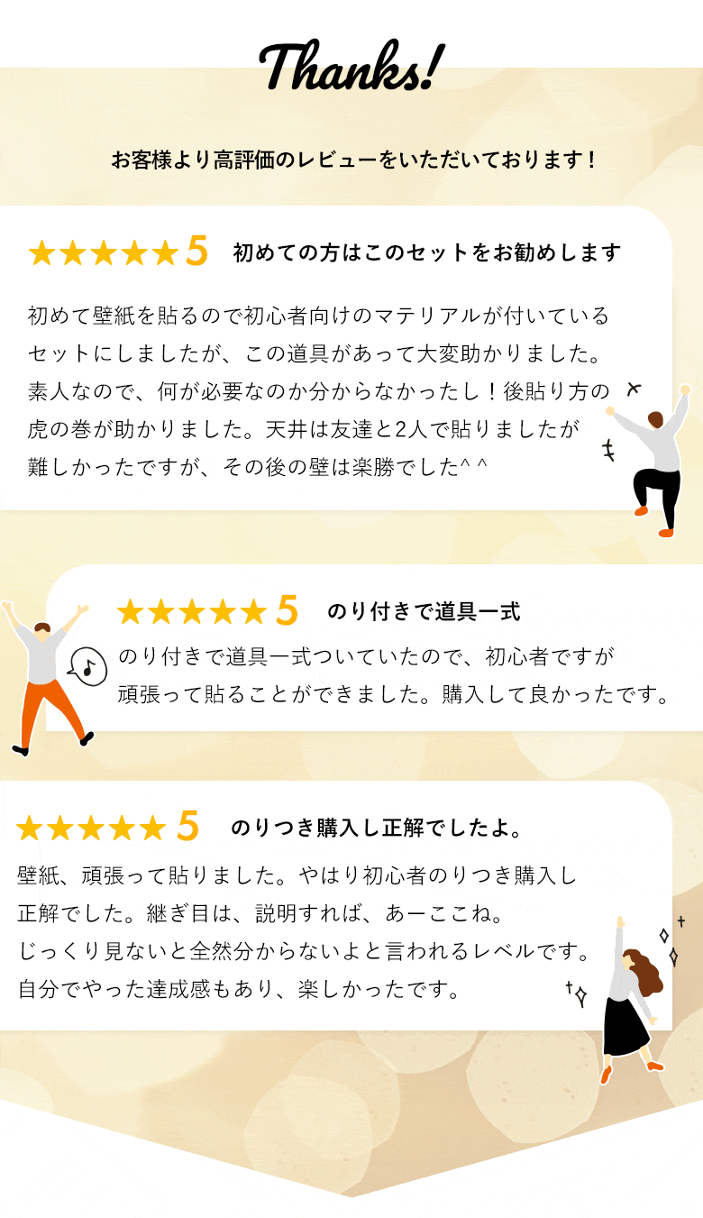 注)汚れ防止壁紙など表面にフィルム加工されている壁紙や、汚れが激しい壁紙の上には接着しない場合もございます。