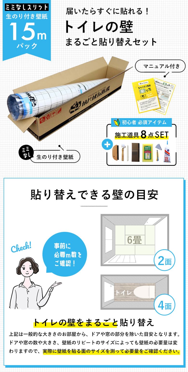 「 スリット壁紙 ミミなし 」 はじめての壁紙15m道具セット