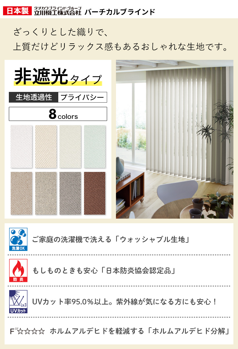 - 縦型 バーチカルブラインド オーダー カーテンレール取付け可 非遮光タイプ タチカワブラインド 立川機工 日本製「幅30-400cm×高さ40-400cm」