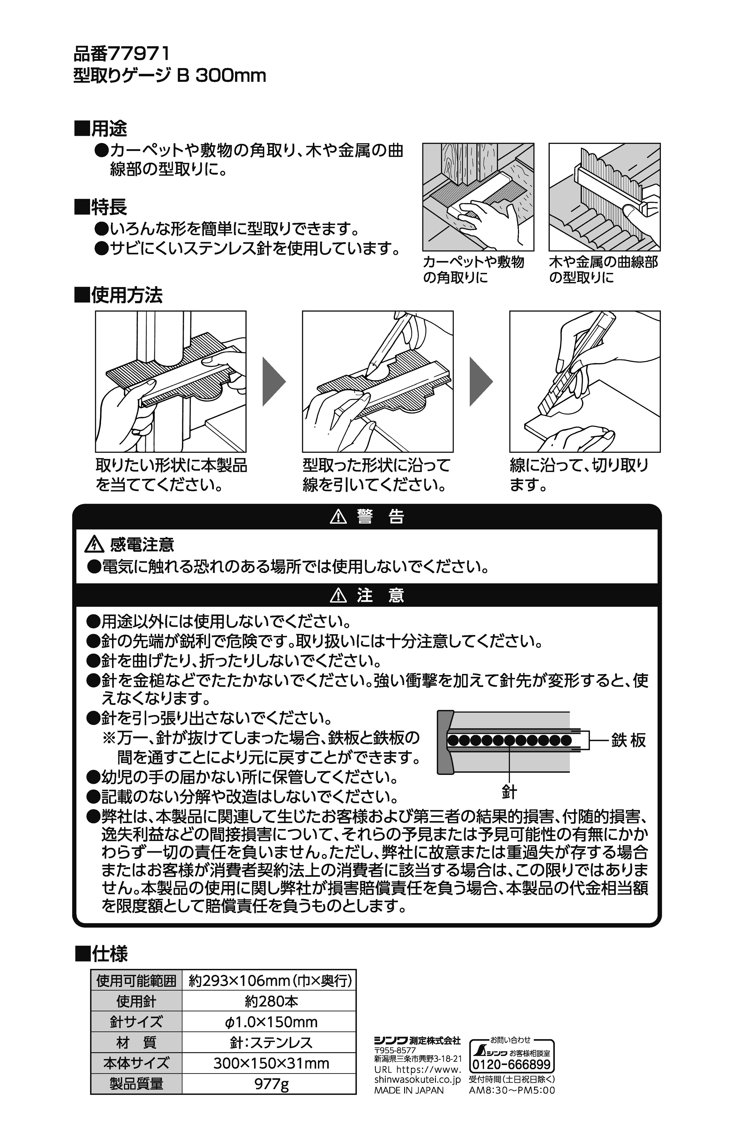 型取りゲージ B 300mm ステンレス針 コンターゲージ