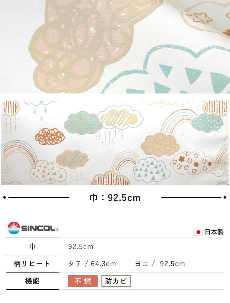 - 【壁紙 のり付き】 壁紙の上から貼れる壁紙 虹 BB-2685