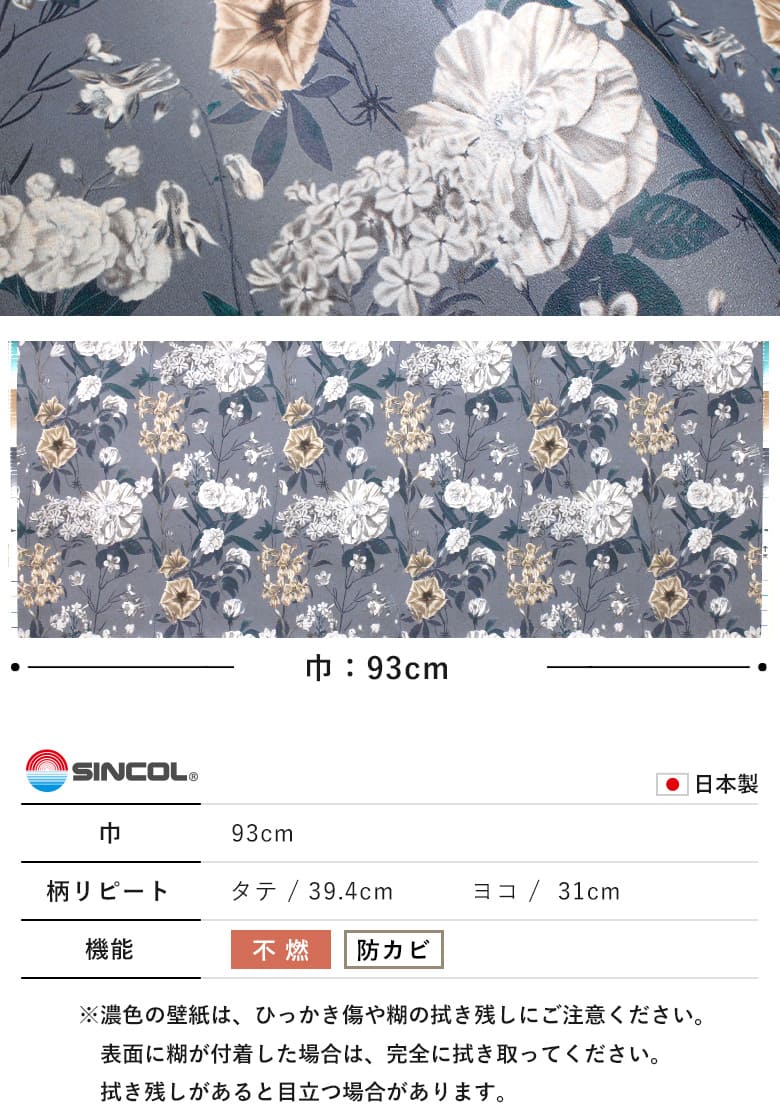 - 【壁紙 のりなし】 はがせる粉のりで賃貸OK アンティーク フラワー 花柄 BB-2723