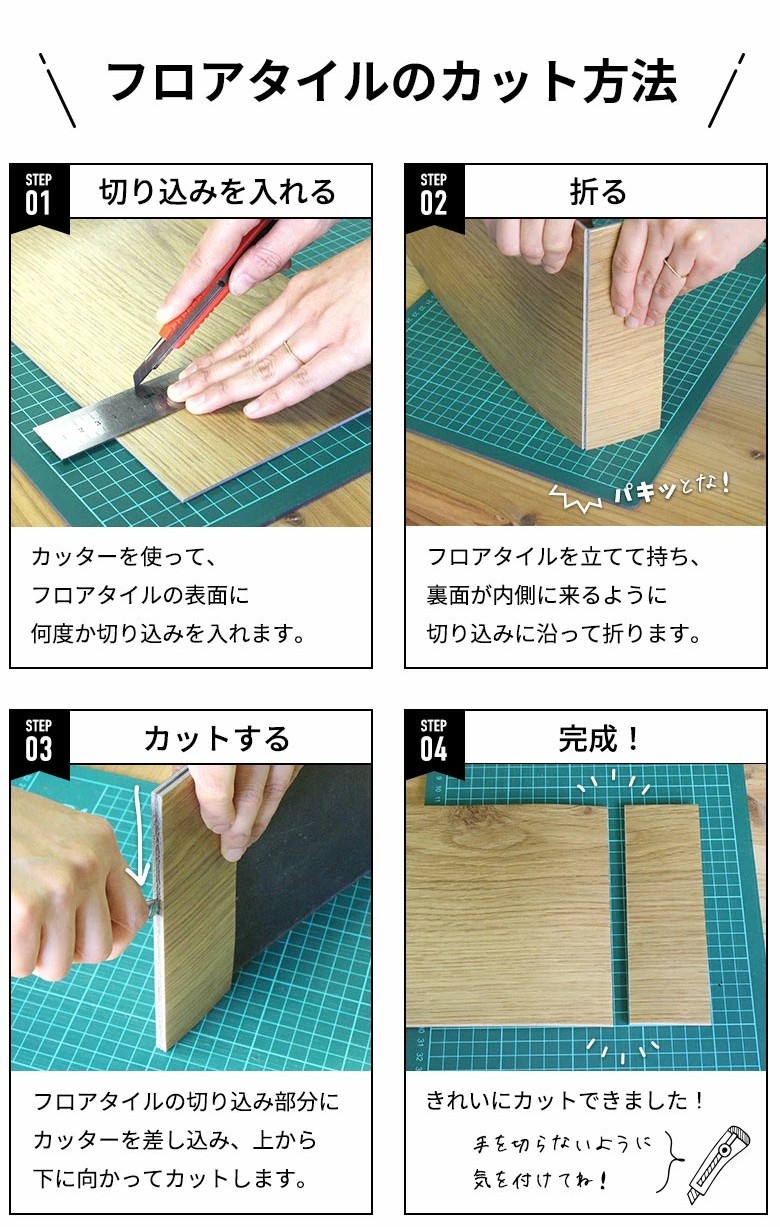 DIYリフォームにおすすめの塩ビ製の床材、フロアタイル。
