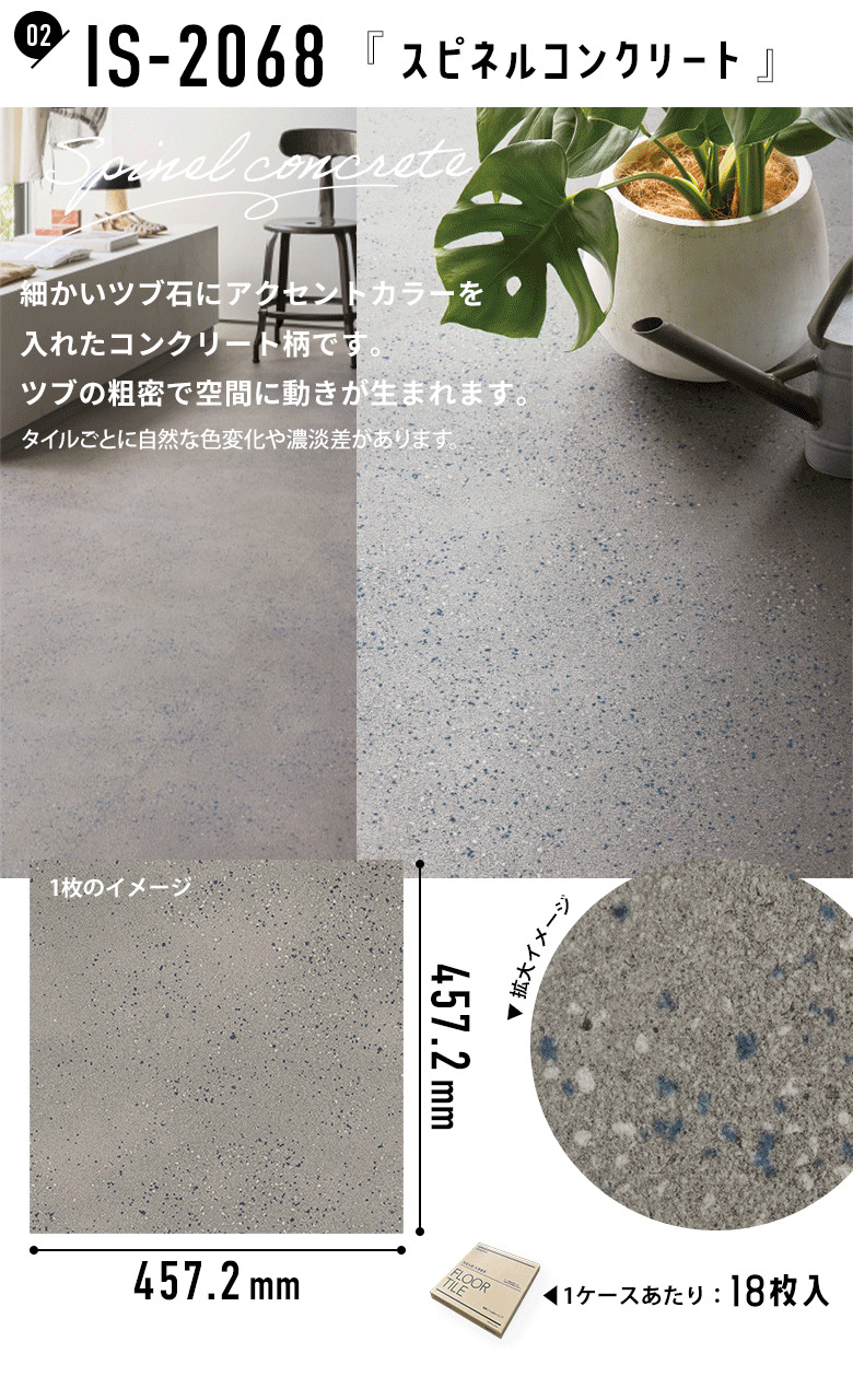 【スピネルコンクリート】細かいツブ石にアクセントカラーを入れたコンクリート柄です。ツブの粗密で空間に動きが生まれます。