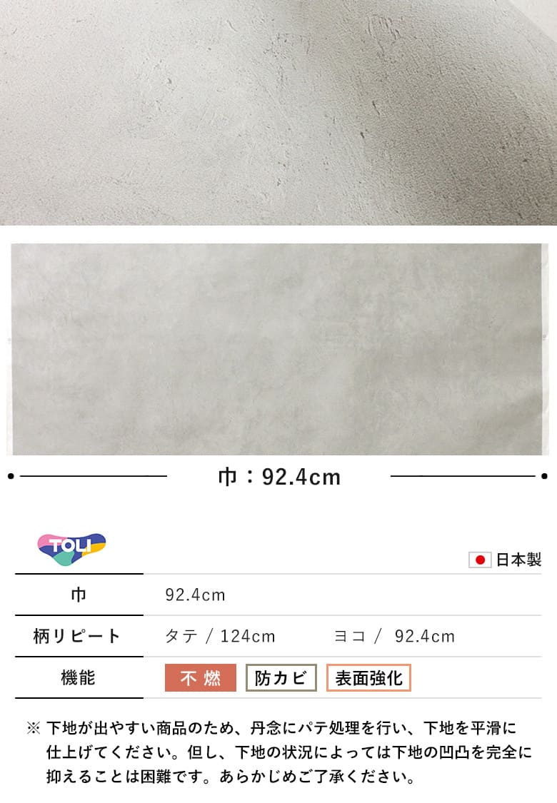 - 【壁紙 のり付き】 「スリット壁紙 ミミなし」 明るめコンクリート 石目柄 WVP-8018